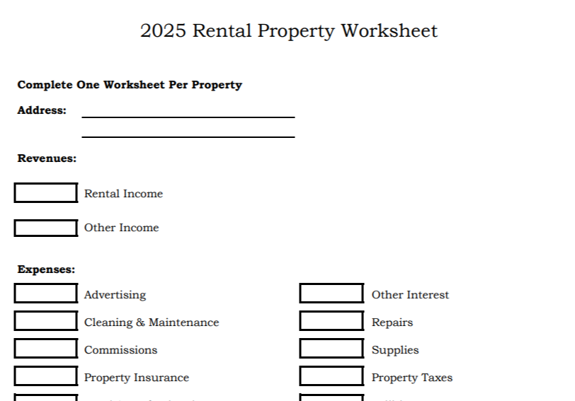 2025 Rental Property Worksheet (PDF)
