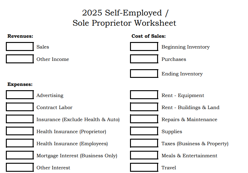 2025 Self-Employed (Sole Proprietor) Worksheet (PDF)